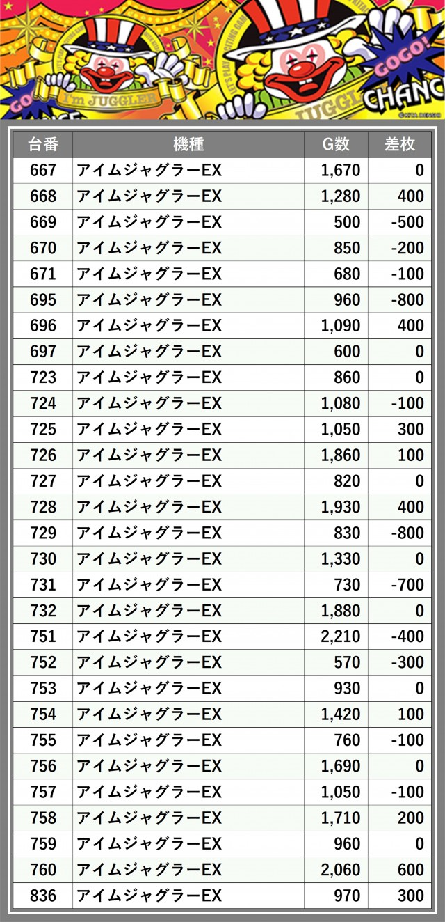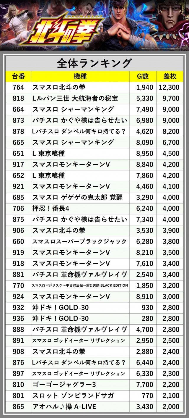 厳選された取材対象機種をはじめ、その他スロット全体から好記録が飛び出した!プレイヤーが楽しんだ1日を下記データにて振り返ってみて欲しい。
