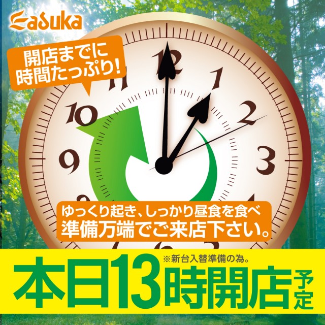 本日13時開店!午後をアスカでお楽しみ下さい!