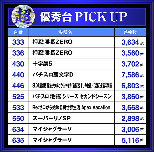 優秀台をピックアップ「超」!