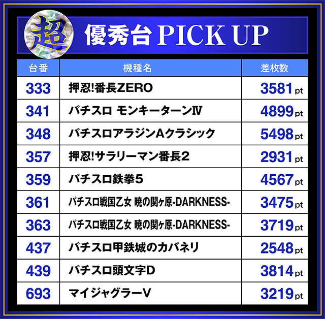 好記録を残す台が多く、複数台が+4,000ptオーバー!!