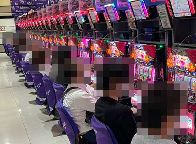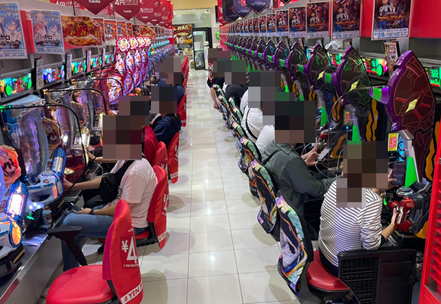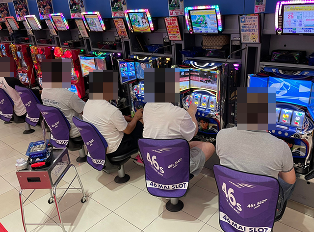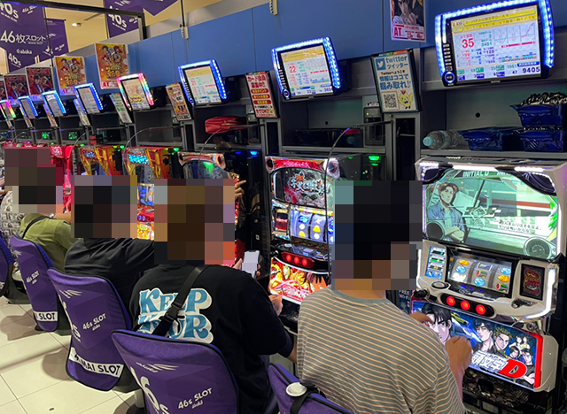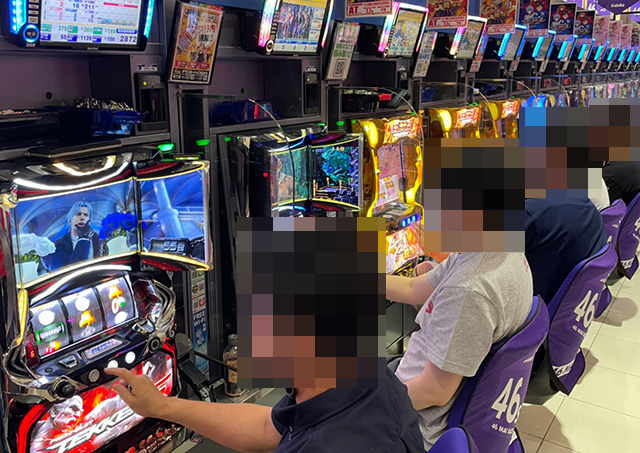 新台の「パチスロ鉄拳5」や定番の「マイジャグラーV」など、さまざまな機種が盛況となっていた。