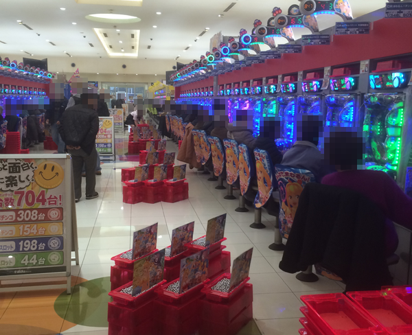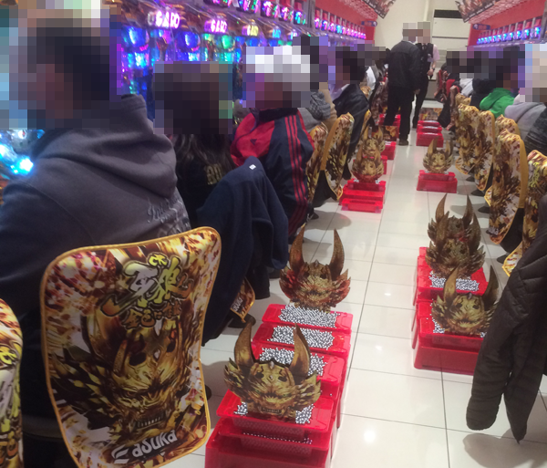 開店すると4円パチンコでは「CRまわるんパチンコ大海物語3」と「CR牙狼 金色になれ」がもっとも人気を集めており、どちらもすぐに満席となった。