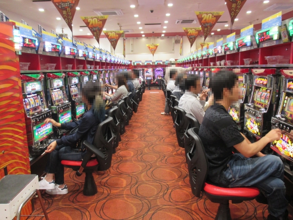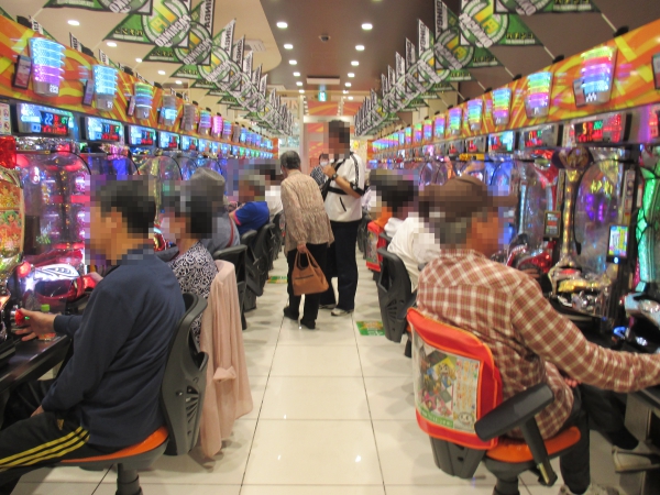 1円パチンココーナーでは、うれしそうな笑みを浮かべる姿も多く、明るい雰囲気に包まれていた。