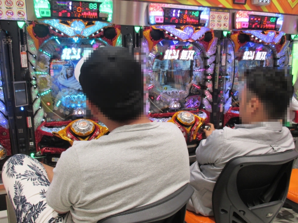 4円パチンコでは、「ぱちんこCR真・北斗無双」や「CRAスーパー海物語IN沖縄4withアイマリン」、「CRスーパー海物語IN沖縄4」などが盛況。目をひくようなパフォーマンスを披露しているプレイヤーが多く、鮮やかな光景もみられた。