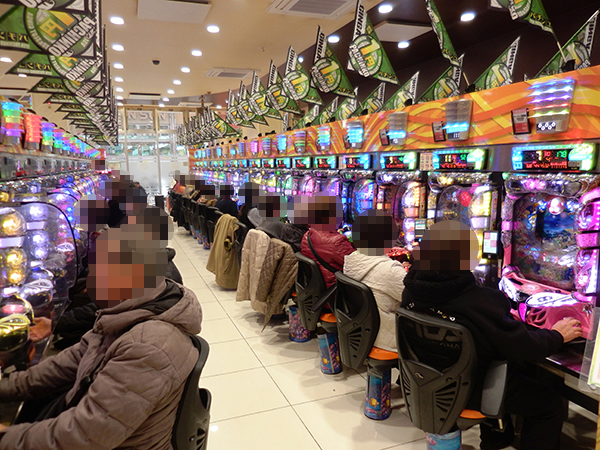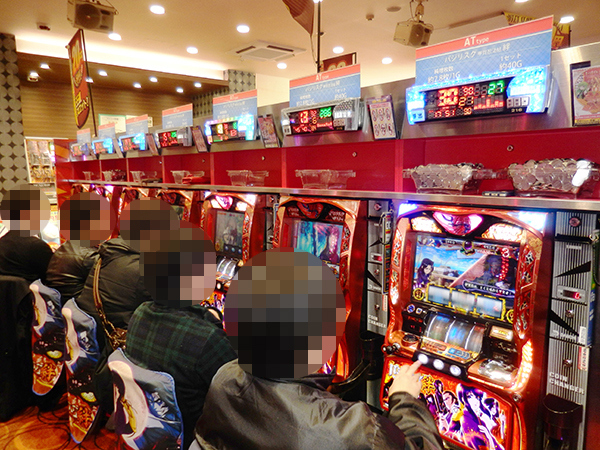 取材時、店内には既に多くのプレイヤーが集結しており、パチンコ・パチスロを問わずにぎやかな状況となっていた。