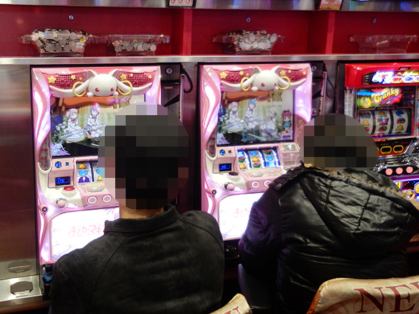 ボーナスタイプの「SLOT魔法少女まどか☆マギカA」も活況といったところ。プレイヤーたちの活躍ぶりが、周囲の目を引いていた。