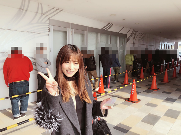 エレガントなコートを羽織り、大勢のプレイヤーと一緒に開店待ち。