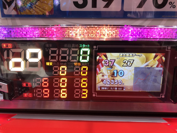 午後は大当り獲得に急ブレーキがかかり、2回目の初当りが2連チャン、3回目の初当りは単発。