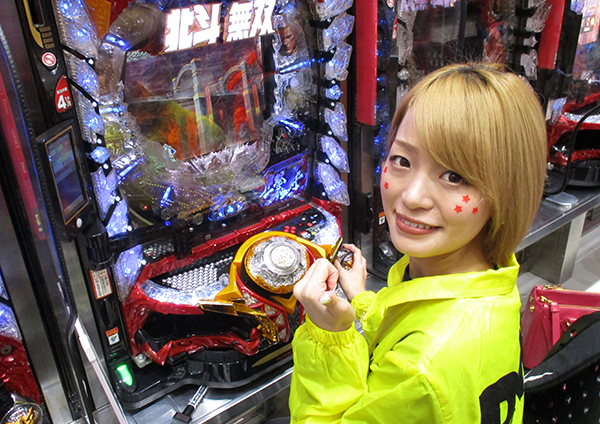 リラックスした様子で入店したあとは、朝イチから人気を集めていた「ぱちんこCR真・北斗無双」を実戦機種にチョイス。