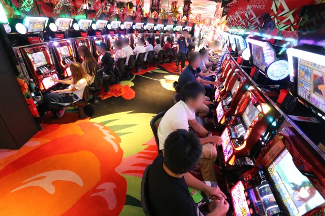 また『北斗転生』も他店とは一線を画す熱気を魅せ、液晶のドル箱表示もズラリ。