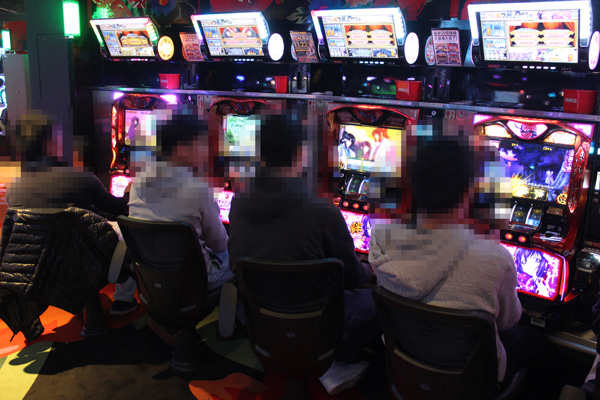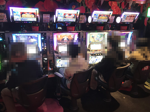 4円パチンココーナーをのぞいてみると、新台の「ぱちんこ新鬼武者 超・蒼剣」や「ぱちんこCR真・北斗無双」などの人気が高く、シマ全体が活況。