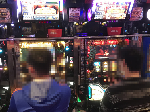 14時を過ぎた20円パチスロコーナーでは、「バジリスク~甲賀忍法帖~絆」や「ミリオンゴッド-神々の凱旋-」、「パチスロ モンスターハンター 月下雷鳴」などが活況。華麗なパフォーマンスを披露しているプレイヤーも確認でき、その表情からは笑みがこぼれていた。