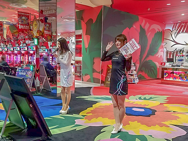 取材時はぱちタウンエンジェルスが来店。プレイヤーたちと笑顔でコミュニケーションをとるなど、店内の盛り上げに一役買っていた。