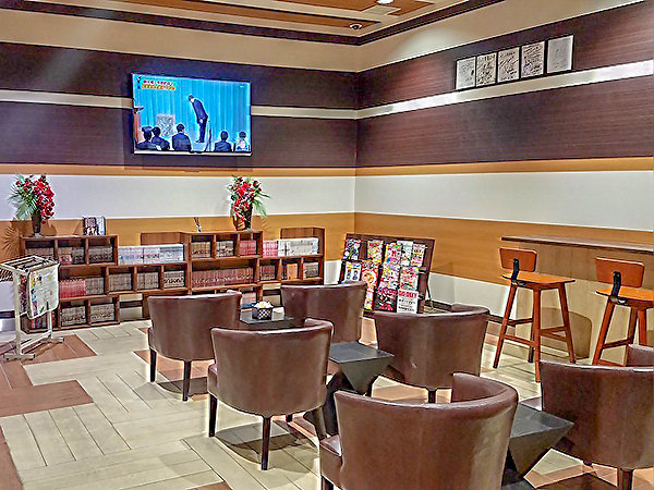 レストスペースにはテレビ・漫画本・新聞が用意されており、プレイヤーたちは有意義な休憩時間を過ごせることだろう。