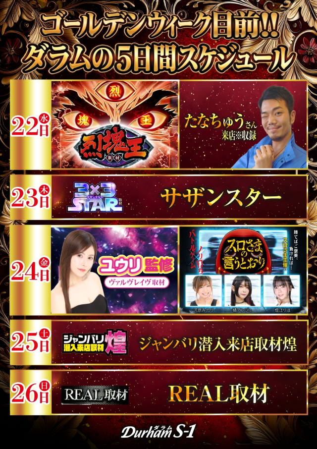 明日から!★GW目前!!ダラムの5日間スケジュール★