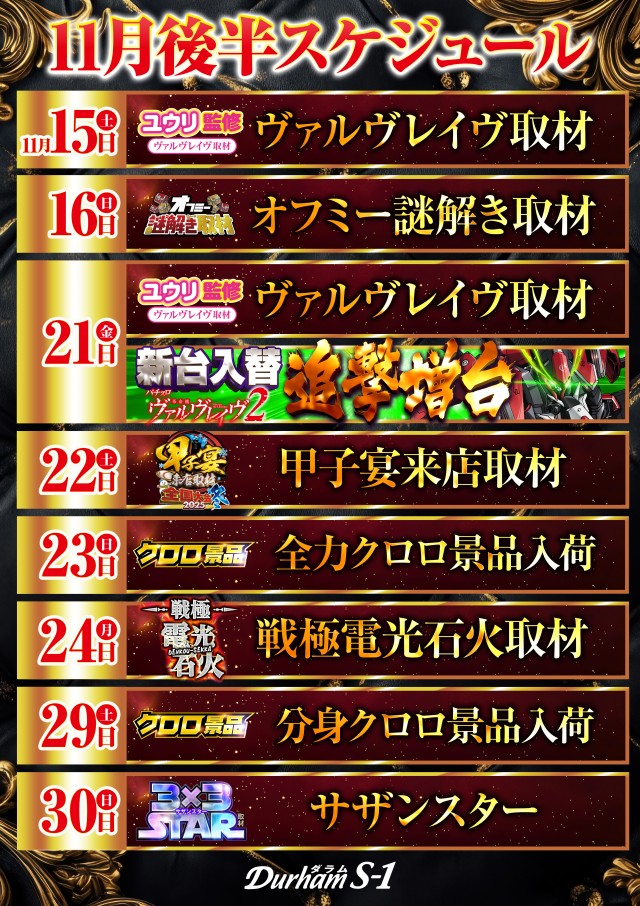 1位 11月11日(火) 2位 11月22日(土) 3位 11月4日(火)