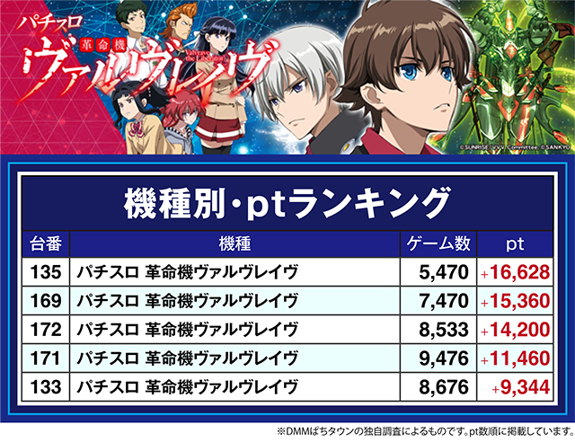 「パチスロ 革命機ヴァルヴレイヴ」の4台が+11,000ptオーバー!!