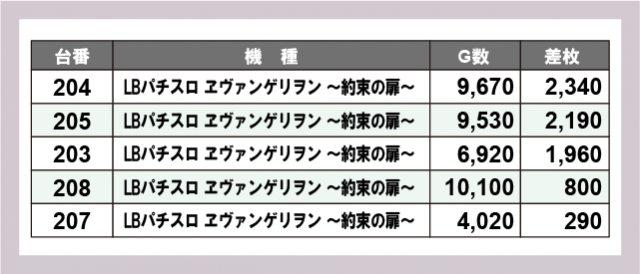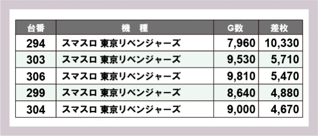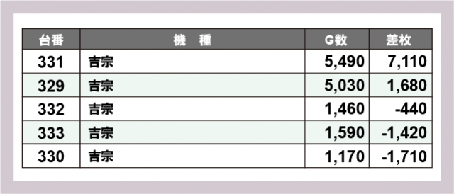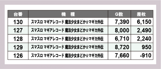 ※差枚数順に掲載しています