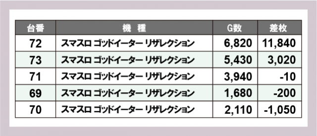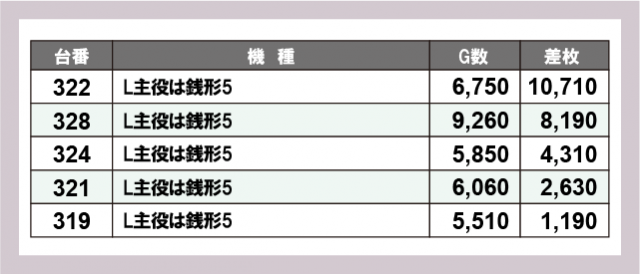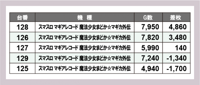 ※差枚数順に掲載しています
