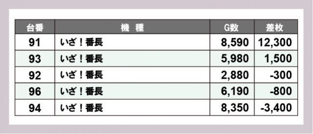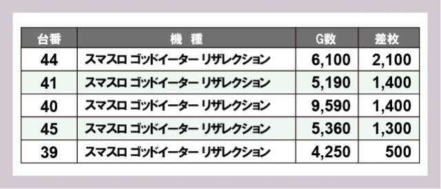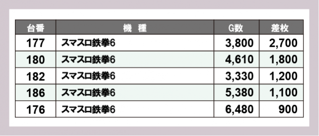 ※差枚数順に掲載しています