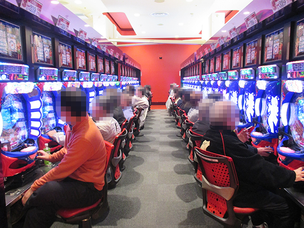 1円パチンコにも多くのプレイヤーが集合。機種を問わずに、いくつもの場所で微笑ましい光景が見られた。