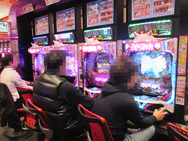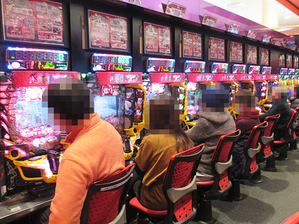 15時を過ぎたころの4円パチンコを見てみると、「CR大海物語4」や「CRスーパー海物語IN沖縄4 桜バージョン 新マックス319ver.」をはじめとした海物語シリーズが人気。プレイヤーたちが華麗なパフォーマンスを披露しており、あちこちで活気が感じられた。