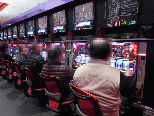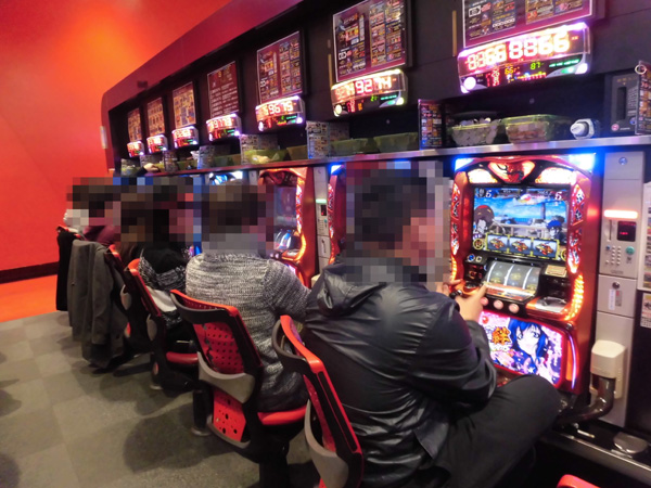 取材当日は、パチンコ・パチスロ共に幅広い年代のプレイヤーでにぎわっていた。