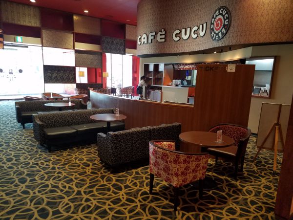 カフェ・レストコーナーは広くてソファ数が多く、遊技の合間に大型TV・ドリンクなどでリラックスできる空間となっている。