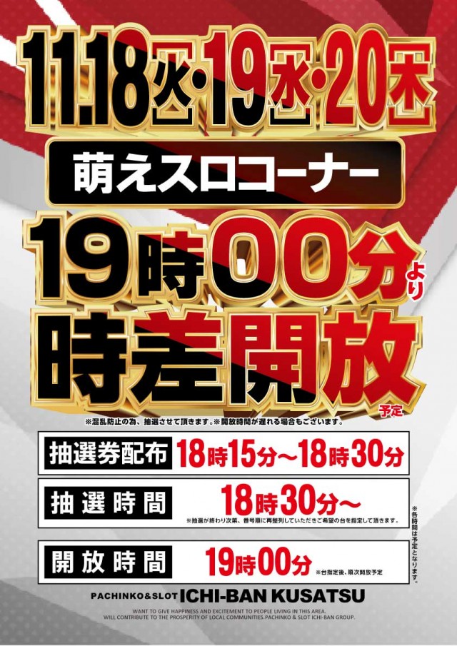 9:10~ 入場抽選券配布 9:30 入場抽選開始 9:55 再整列 *日時によっては抽選時間は変更になる事が御座います。 |