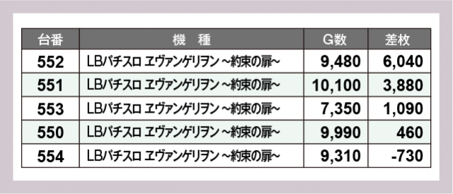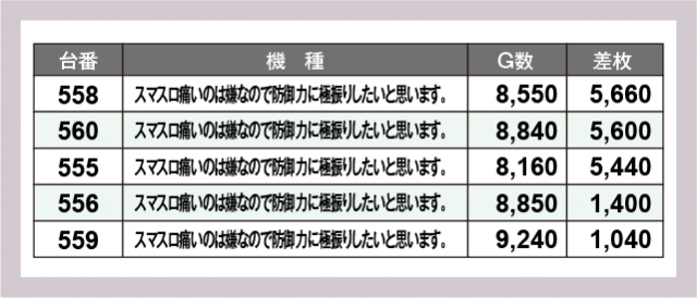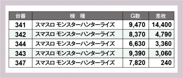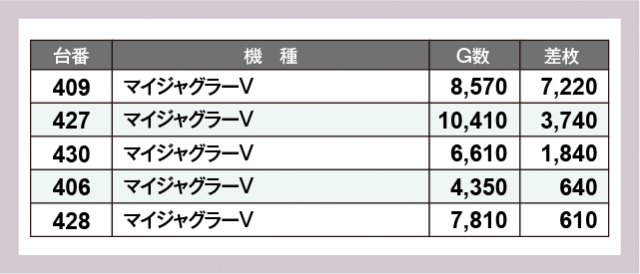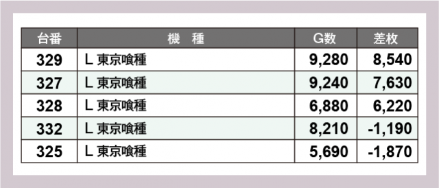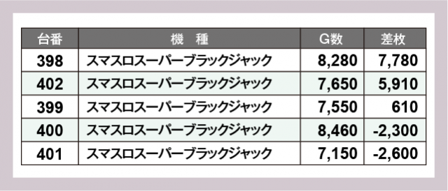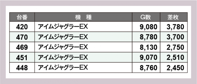 ※差枚数順に掲載しています