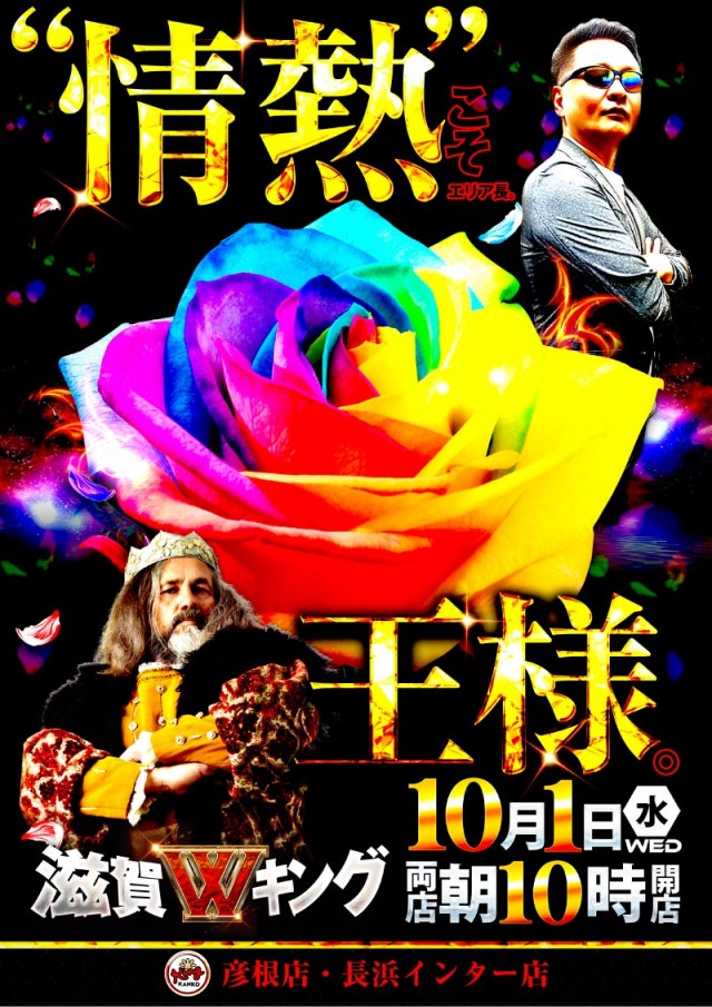 滋賀Wキング!10月も積極。10月1日【水】朝10時開店!!