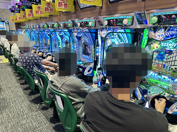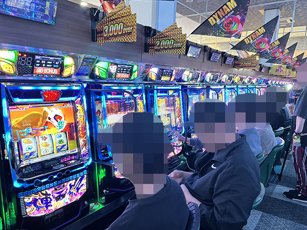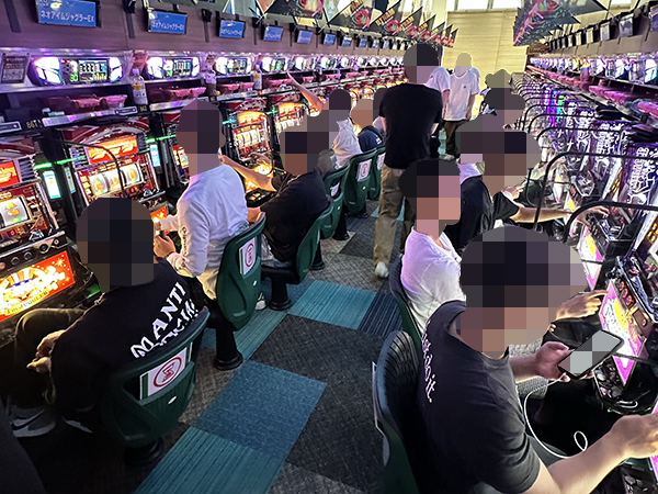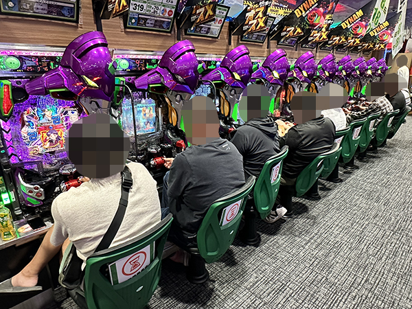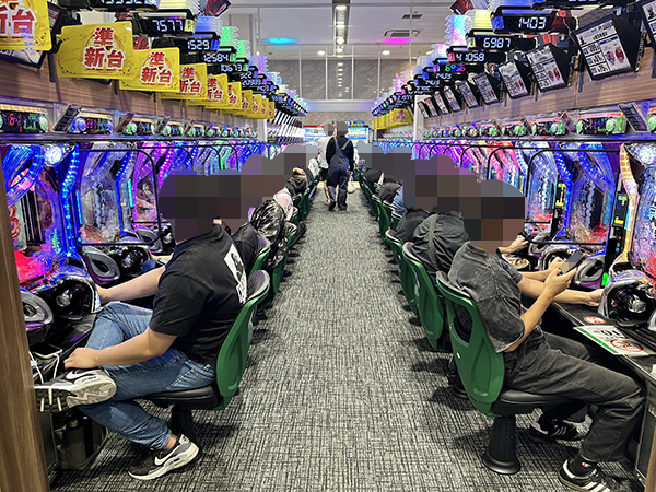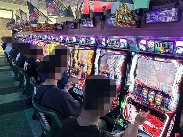 取材時は既に多くのプレイヤーが集結し、パチンコ・パチスロを問わずにぎやかな状況となっていた。