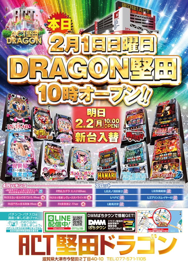 明日2月2日(月)ACT堅田『新台OPEN日』!!