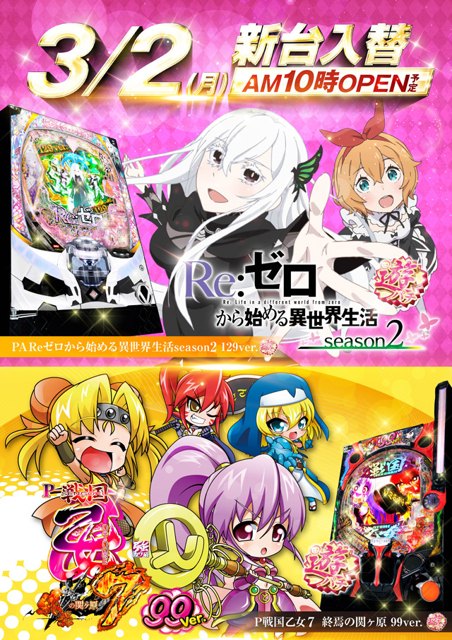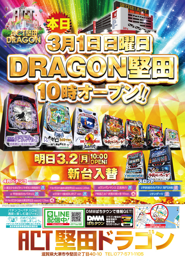 明日3月2日(月)ACT堅田『新台OPEN日』!!
