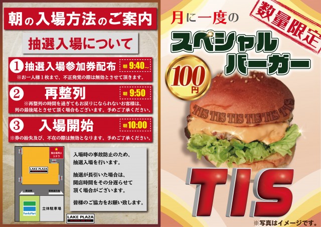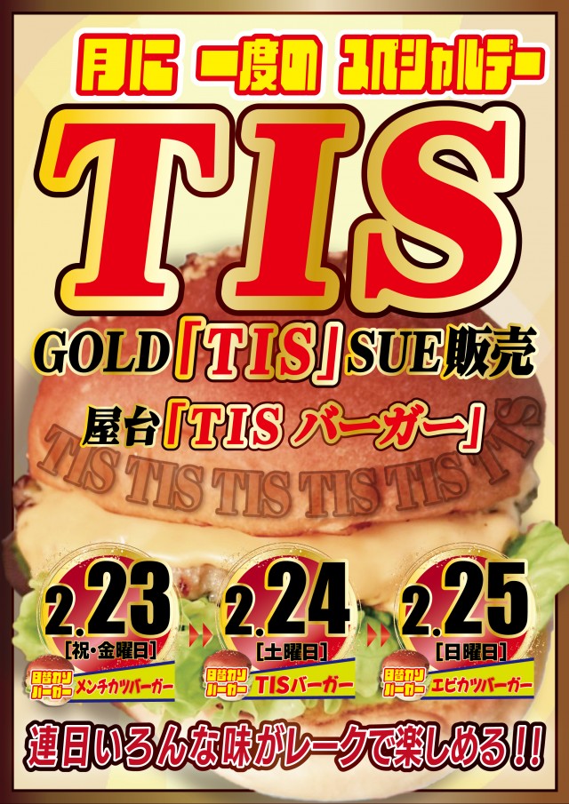 本日は月に一度のスペシャルDAY🌈 🍔TISバーガー販売🍔