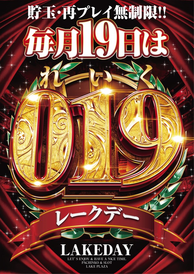 本日19日はレークの日🌈🌈貯玉・再プレイ無制限だよ~🌈🌈🌈