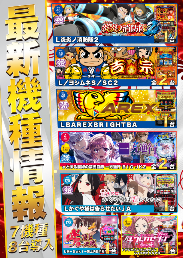 明日2月19日(木)新台入替初日!7機種8台導入!!