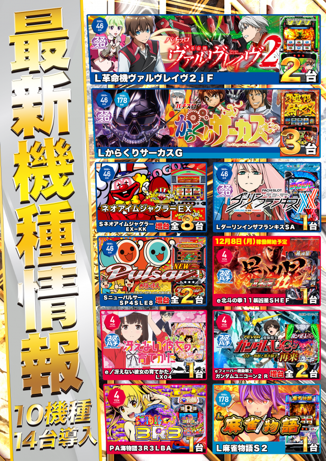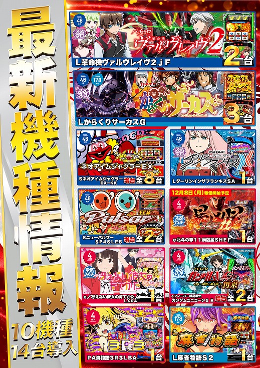 11月26日(水)新台入替初日 ~10機種14台導入~