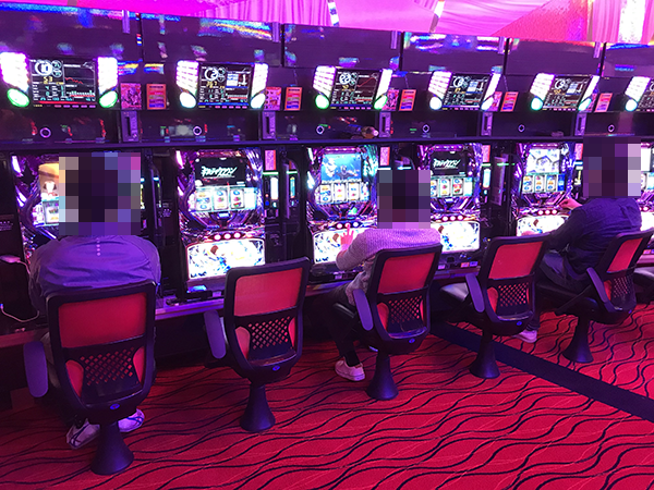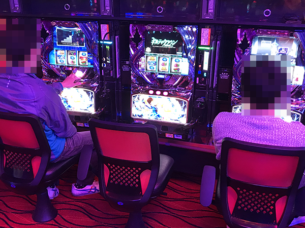 確認時は設置されている6台のうち3台が稼働。1台おきに座っているプレイヤーたちは、イキイキとレバーを叩いていた。