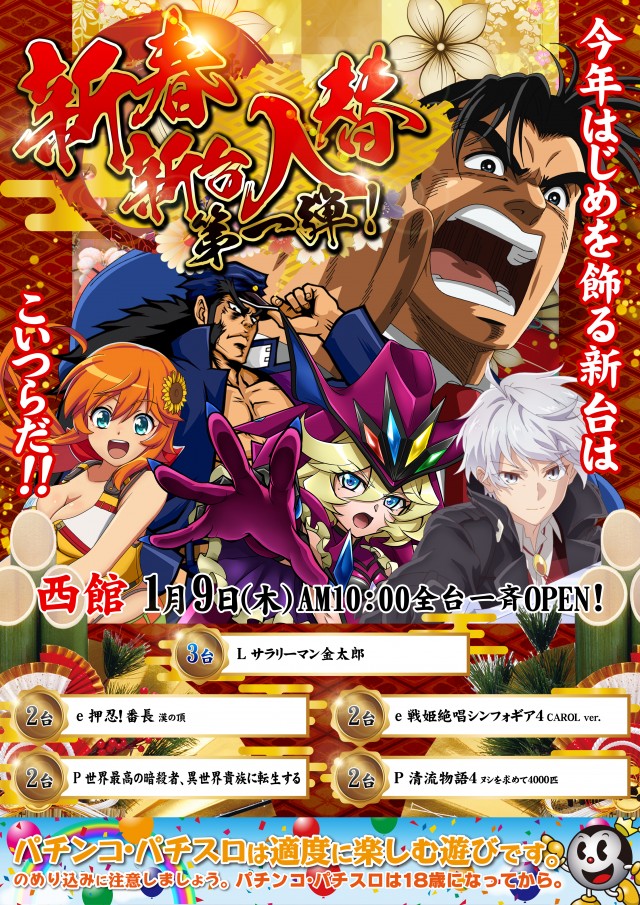 本日1/9日は【西館新台入替】全台10:00オープン🌞