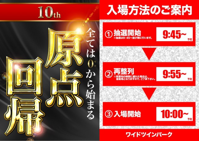 明日10日【原点回帰】&【特別景品販売】入場抽選になります🌞