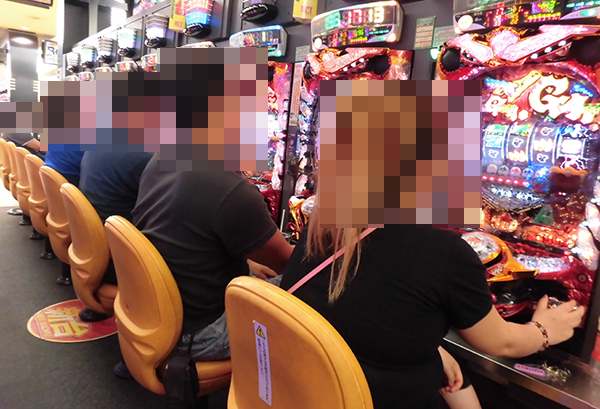 「秘宝伝 〜TheLast〜」や「ミリオンゴッド-神々の凱旋-」にも笑顔で遊技をおこなう姿がみられるなど、見応えのある光景はあちこちにあった。