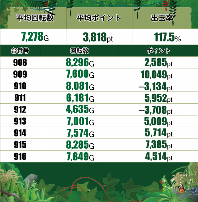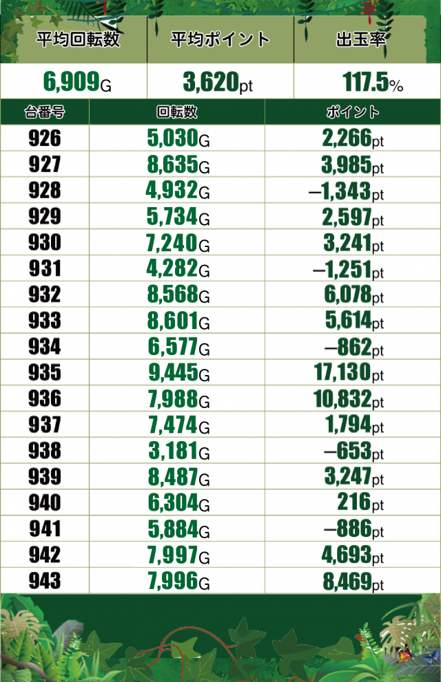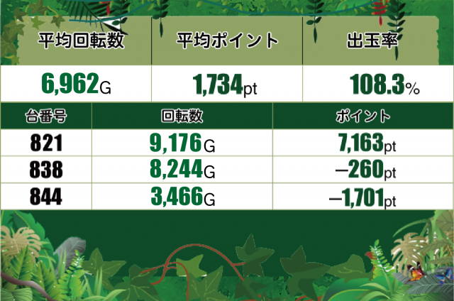 最大は+35,830ptですが、他にも30,000ptオーバーの機種が出るなど、一撃性を見せつけた『ぱちんこCR真・北斗無双』と、機種のイメージ通りの結果になったのが印象的!