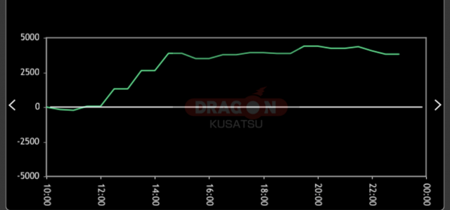 当日のグラフを見ていただければおわかりになるかと思いますが、今回も『押忍!番長3』の結果は上々。