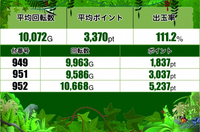 平均回転数10,000Gを上回っていることからわかるように、みなさん粘って打つほど楽しめる状況だったんでしょう。
