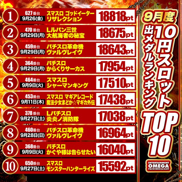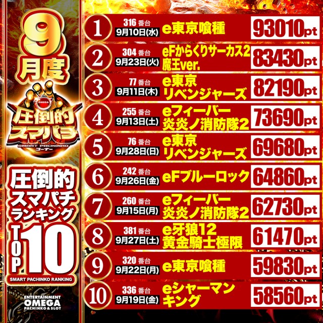 1位 10月19日(日) 2位 10月25日(土) 3位 11月3日(月)