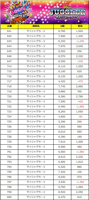 マイジャグラーⅤ勝率:76.4%(26/34)平均差枚:758枚