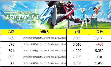 スマスロ交響詩篇エウレカセブン4HI-EVOLUTION勝率:80%(4/5)平均差枚:1584枚
