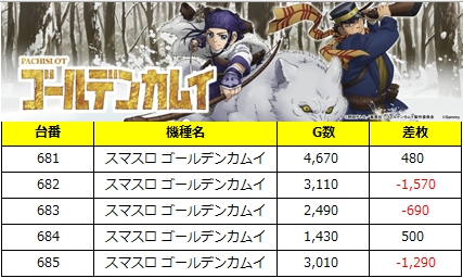 スマスロ ゴールデンカムイ勝率:40%(2/5)平均差枚:-514枚