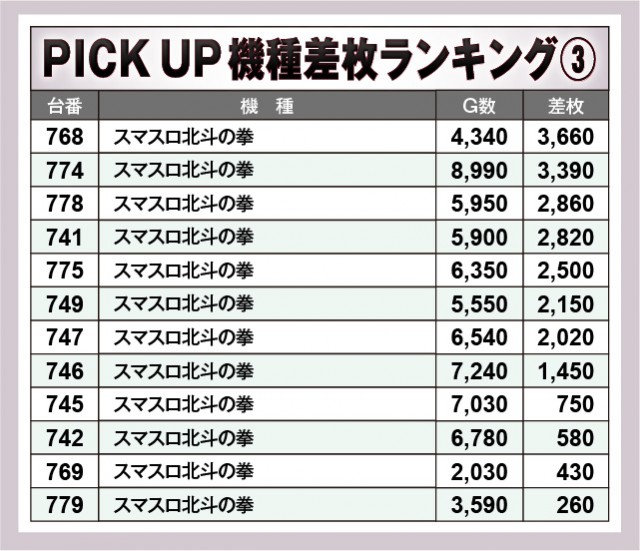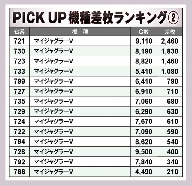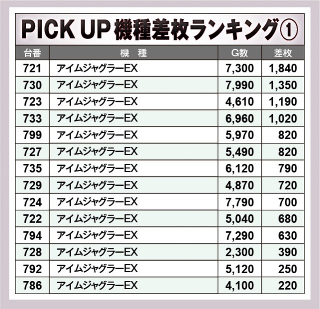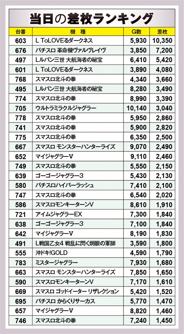 ※差枚数順に掲載しています。